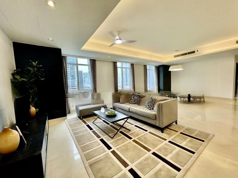 This well-maintained 4-bedroom unit boasts an open layout that enhances the sense of space. The fully-furnished interiors are complemented by high-end fittings, while the large windows frame picturesque views of the multi-tiered swimming pool and city skyline. Enjoy the designer outdoor lounge seating and tranquil waterfall feature right outside your door, perfect for relaxation and entertaining.