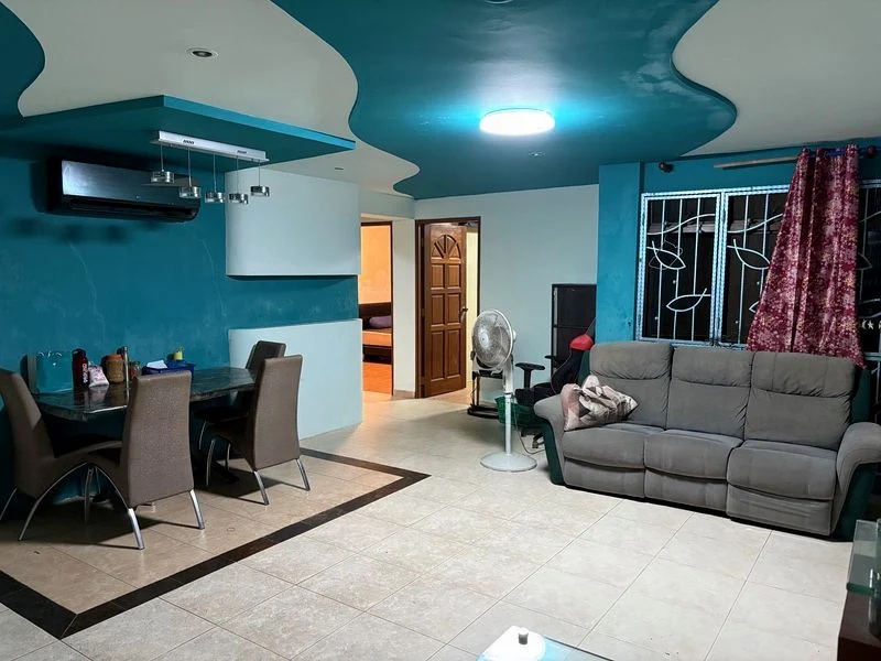 Step into a world of modern elegance as you enter this beautifully renovated HDB flat at 260A Sengkang East Way. The open-concept living area greets you with a stunning marble-look TV feature wall, complemented by cove lighting that creates a cozy ambiance. Enjoy the natural light filtering through the space, enhancing the warmth of the wood-look vinyl flooring and the stylish designer pendant light in the dining area.