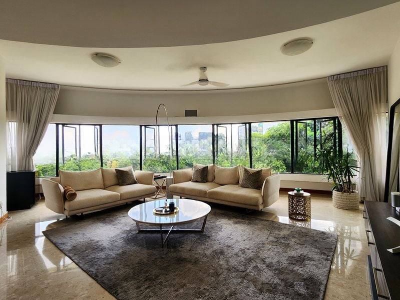 Step into this exquisite unit at The Draycott and be greeted by an abundance of natural light pouring through the curved floor-to-ceiling windows. The bright and airy ambiance, complemented by elegant marble flooring, creates a welcoming atmosphere that invites relaxation. Enjoy unobstructed views of lush greenery and the city skyline, making every moment spent here a visual delight.