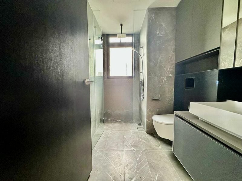 Step into a world of elegance and tranquility as you enter this brand-new 2-bedroom unit at Irwell Hill Residences. Bathed in natural light, the open-concept living and dining area features exquisite marble-look floor tiles and expansive floor-to-ceiling windows that frame breathtaking views of the city skyline and lush greenery. The modern minimalist ambiance is accentuated by recessed lighting, creating a warm and inviting atmosphere.