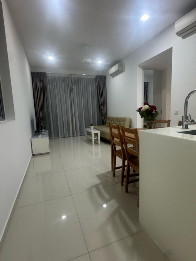 Step into a world of modern elegance as you enter this beautifully renovated 2-bedroom unit at Bedok Residences. Bathed in abundant natural light, the open-concept living area features sleek white tiled flooring and seamless access to a private balcony, offering stunning views of lush greenery and the urban landscape beyond.