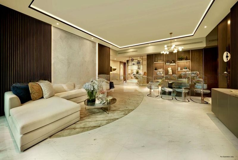 This thoughtfully designed 3-bedroom unit boasts standout features including a fully-equipped kitchen with integrated Miele appliances, a luxurious marble-finished bathroom with a soaking bathtub, and a private lift lobby for added exclusivity. Each room is crafted for comfort, with the study/bedroom offering floor-to-ceiling sliding glass doors that lead to a private balcony, enhancing the overall living experience.