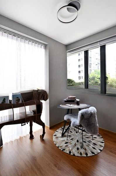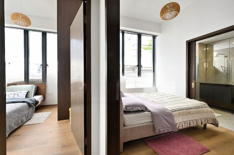 Step into this brand-new, fully-furnished unit at Centro Mansions and be greeted by an abundance of natural light pouring through the floor-to-ceiling windows. The modern minimalist ambiance is accentuated by high ceilings and polished light-colored floor tiles, creating a spacious and inviting atmosphere that feels both luxurious and comfortable.
