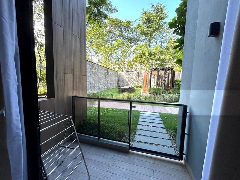 Step into a sanctuary of light and space where high ceilings and floor-to-ceiling windows invite abundant natural light to fill the living and dining area. The bright and airy ambiance is complemented by a serene garden view from the balcony, creating a perfect retreat for relaxation.