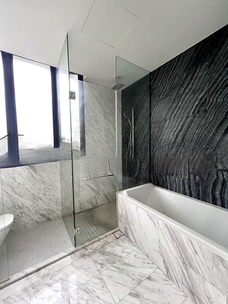 Step into a world of modern elegance as you enter this brand-new designer unit at Sunrise Gardens. The abundant natural light floods the open-concept living space, highlighting the large format white marble flooring and the seamless connection to the outdoor wooden deck patio. Floor-to-ceiling glass sliding doors invite the lush greenery of the garden into your home, creating a tranquil ambiance that soothes the senses.