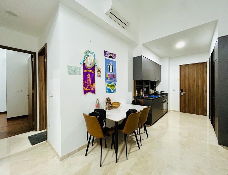 Step into this beautifully maintained unit at Daintree Residence and be greeted by an abundance of natural light streaming through the floor-to-ceiling windows. The modern minimalist ambiance, accentuated by marble flooring and white walls, creates a serene environment that invites relaxation. Enjoy views of lush greenery and the surrounding residential landscape, enhancing your living experience.