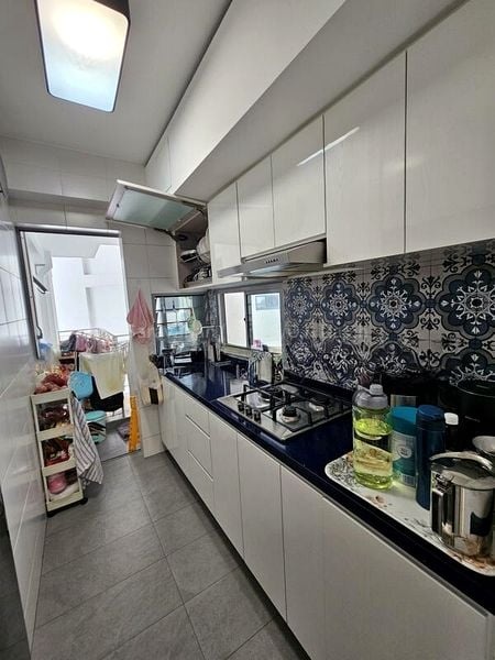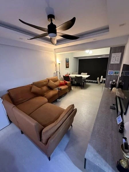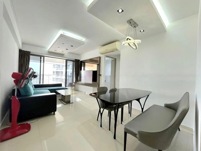 Step into this beautifully renovated HDB flat and be greeted by an abundance of natural light that fills the open-concept living space. The bright ambiance is enhanced by designer false ceilings featuring cove lighting, creating a warm and inviting atmosphere. Enjoy stunning views of the city skyline from the high floor, complemented by a spacious balcony adorned with wood decking, perfect for relaxation.