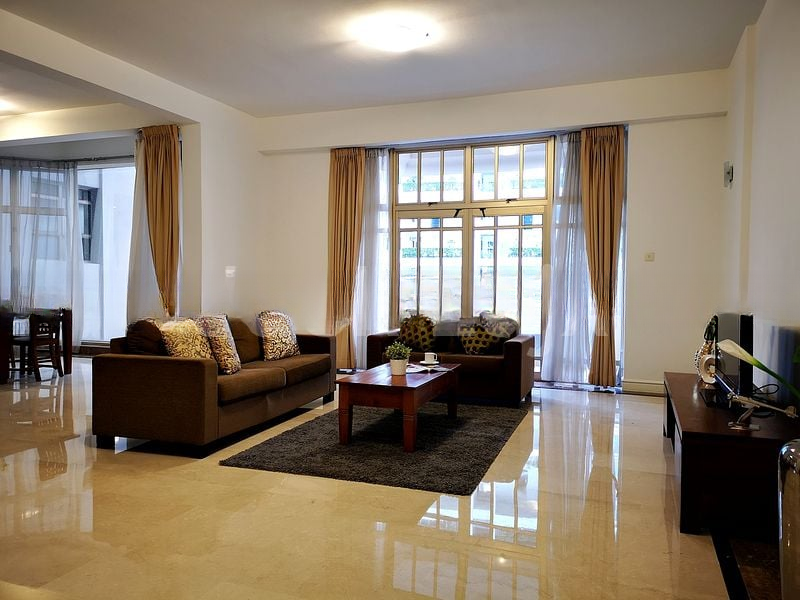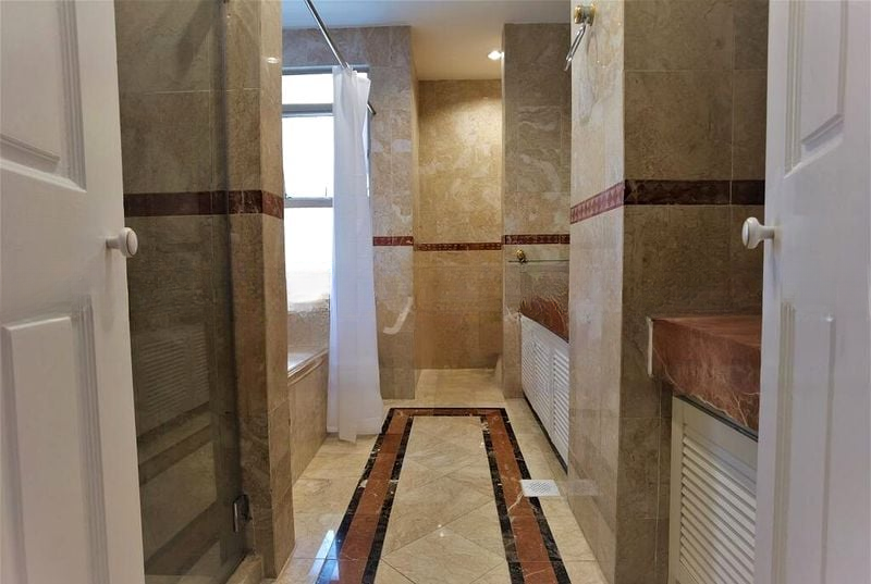 Step into a world of elegance as you enter this stunning 4-bedroom unit at Leonie Condotel. The bright and airy ambiance is accentuated by abundant natural light pouring through large curved floor-to-ceiling windows, highlighting the exquisite polished marble flooring with dark borders. The seamless blend of modern finishes and thoughtful design creates an inviting atmosphere that feels both luxurious and comfortable.