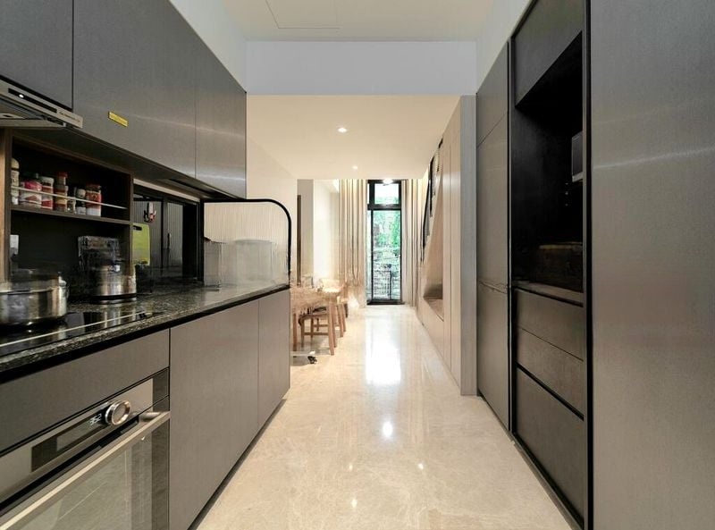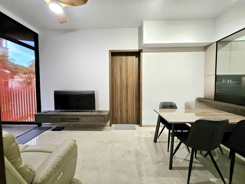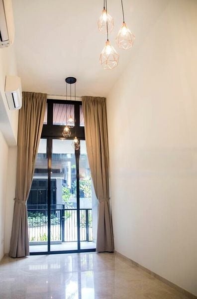 Step into a world of elegance as you enter this beautifully designed unit at Daintree Residence. The abundant natural light floods the space, highlighting the high ceilings and the exquisite marble-look floor tiles. With an arched wall feature and floor-to-ceiling curtains, the ambiance is both bright and airy, creating a serene retreat amidst lush greenery views.