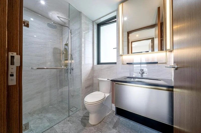 This well-maintained unit features a thoughtfully designed layout with two bedrooms, including a master suite that boasts stunning views and extensive built-in storage. The L-shaped kitchen is a chef’s delight, equipped with integrated appliances, under-cabinet lighting, and elegant grey and white cabinetry. Enjoy meals in the dedicated dining area with built-in bench seating, complemented by designer pendant lighting, while the bathroom offers a luxurious rain shower experience.