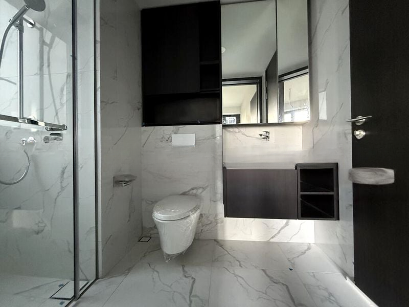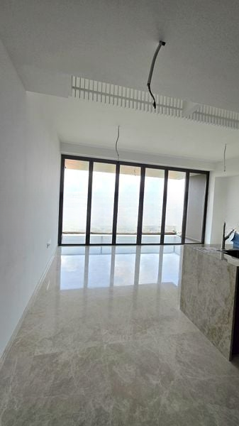 Step into a world of elegance and sophistication in this brand-new, modern minimalist unit at LIV @ MB. The moment you enter, you are greeted by abundant natural light pouring through floor-to-ceiling glass folding doors, illuminating the polished marble flooring and offering breathtaking views of the city skyline and lush greenery. The open concept living and dining area seamlessly connects to a private balcony, creating an inviting space for relaxation and entertainment.