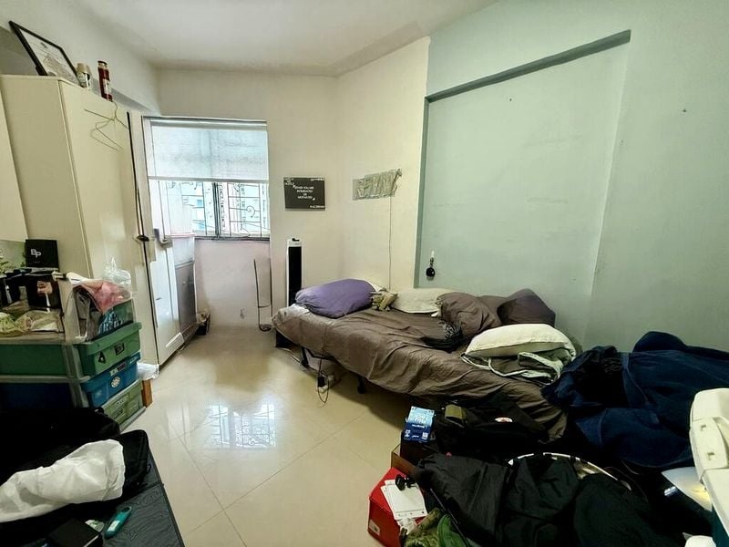 Step into this functional and lived-in 4-bedroom flat, where the moderate natural light dances across the tiled flooring, highlighting the extensive wooden cabinetry and marble-top dining table. The ambiance is warm and inviting, with views of lush greenery that create a serene backdrop for your daily life.