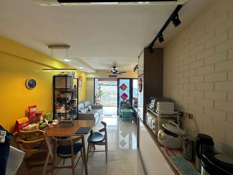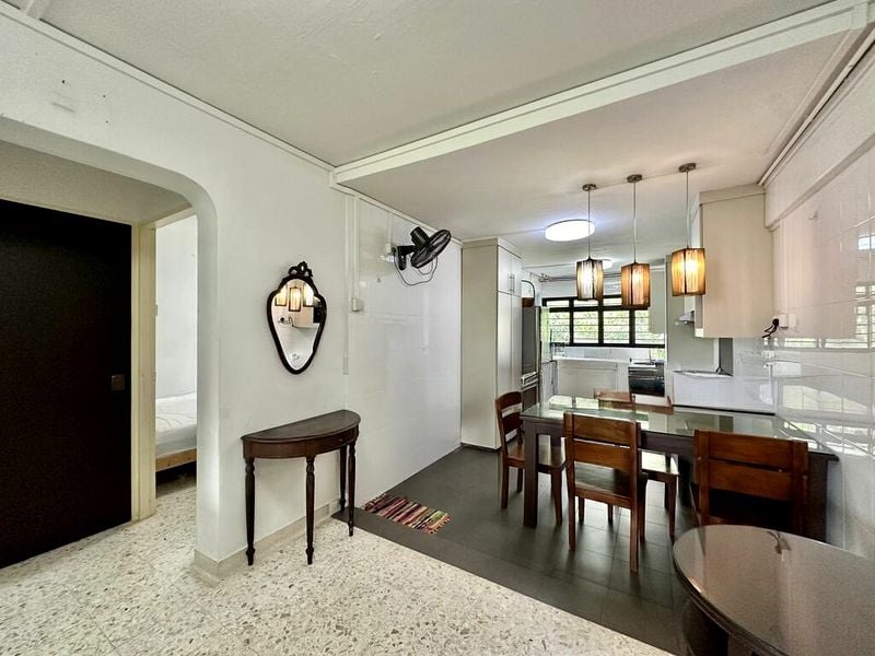 Step into a world of charm as you enter this spacious HDB unit, where traditional elegance meets modern living. The marble-patterned floor tiles and arched doorway create an inviting ambiance, while the moderate natural light filters through, enhancing the warmth of the fully-furnished living space. Enjoy picturesque views of both greenery and the urban landscape from the comfort of your home.