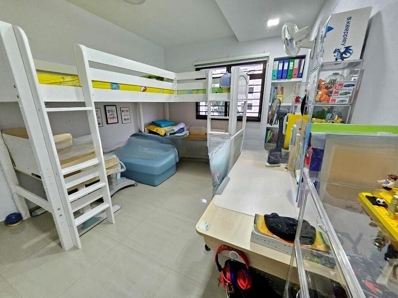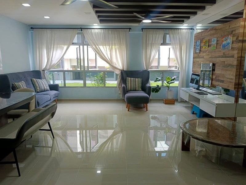 Step into a world of modern elegance as you enter this beautifully renovated 4-bedroom flat at 302C Anchorvale Link. The abundant natural light floods the spacious open-concept living and dining area, accentuated by polished tile flooring and large windows that offer an urban view of the neighboring blocks. The ambiance is enhanced by a glass-walled study room, creating a seamless connection between work and leisure.