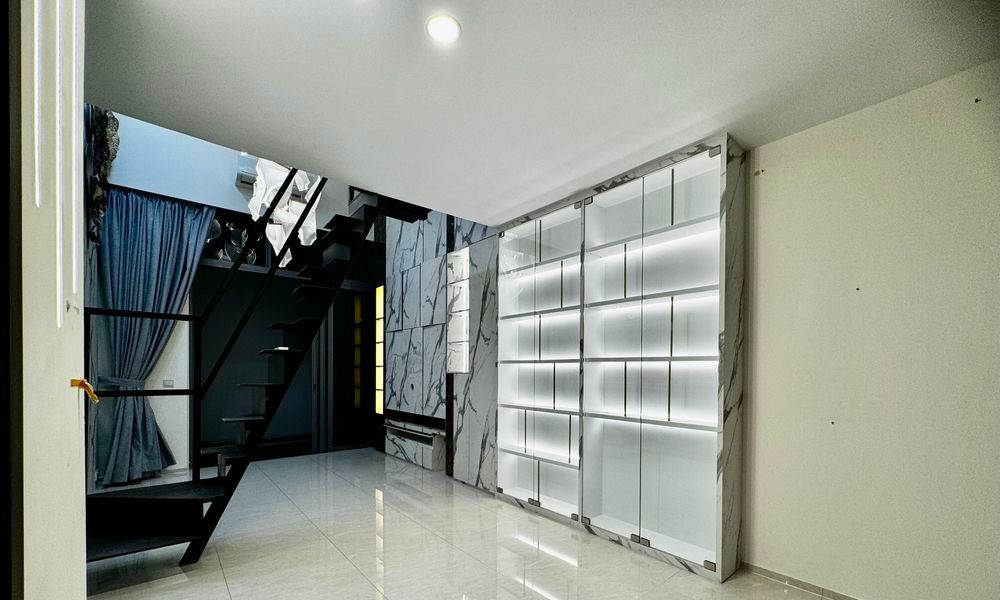 This well-maintained unit features a modern layout with a fully-equipped kitchen boasting an integrated oven and undermount sink, perfect for culinary enthusiasts. The bedroom offers a serene retreat with wood-look laminate flooring and blackout curtains, ensuring restful nights. The bathroom is a luxurious haven with marble-look tiles, a floating vanity, and a glass shower partition, enhancing the overall sophistication of the space.