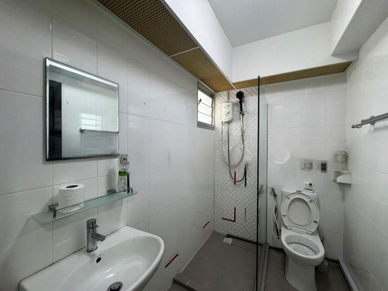 Step into a serene oasis where modern minimalist design meets functionality. This well-maintained HDB flat greets you with marble-look floor tiles that flow seamlessly throughout the space, complemented by an abundance of natural light filtering through large windows. The unblocked views of lush greenery and the cityscape create a tranquil ambiance, perfect for relaxation.
