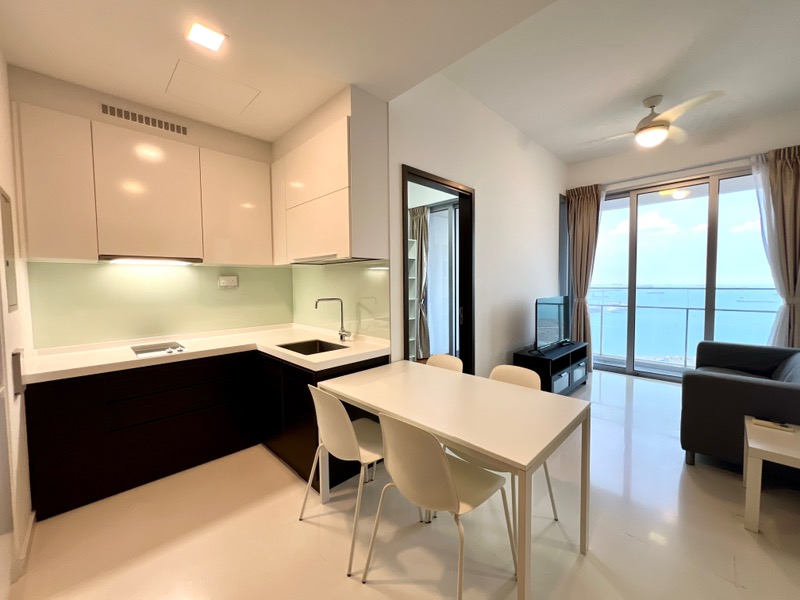 Step into a bright and airy sanctuary at EON SHENTON, where abundant natural light floods the open-concept living area, accentuating the sleek finishes and unobstructed sea views. The inviting ambiance is complemented by a spacious balcony with decked flooring, perfect for enjoying coastal vistas and the gentle sea breeze.