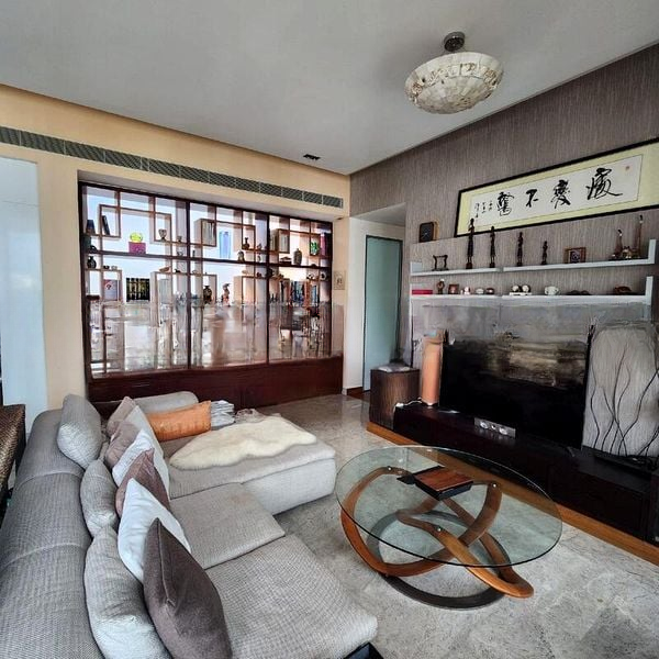 This spacious 3-bedroom unit boasts a well-thought-out layout, featuring an island kitchen with a breakfast bar, perfect for casual dining. The ergonomic home office setup is ideal for productivity, while the walk-in closet with a glass partition adds a touch of luxury. Each room is designed with comfort in mind, from the curved window wall in the bedroom to the extensive built-in shelving in the study, ensuring both style and functionality.