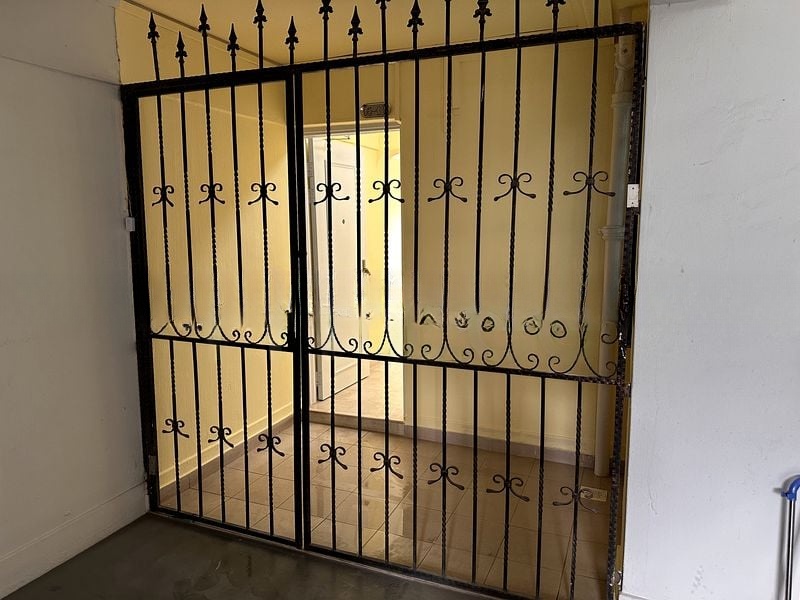 Step into a bright and airy sanctuary at 62 Dakota Cres, where the elegance of marble-look floor tiles meets the charm of an ornate black wrought iron entrance gate. The spacious open-plan living area, adorned with pale yellow walls and enhanced by pendant and track lighting, invites you to bask in the natural light that flows through the unit, offering a warm and welcoming ambiance.