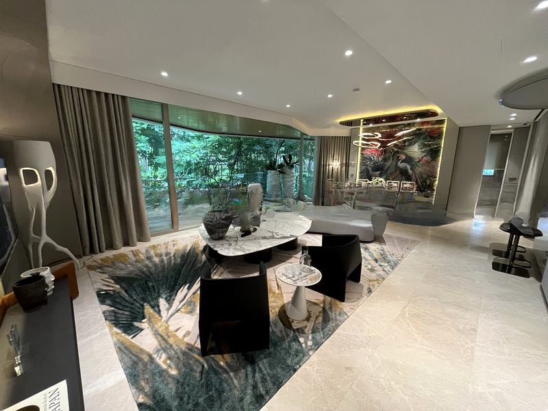 Step into a world of modern luxury as you enter this brand-new unit at Park Nova. The designer finishes immediately captivate, featuring marble-look porcelain flooring that reflects natural light, complemented by elegant pendant lighting. The expansive floor-to-ceiling windows frame serene greenery views, creating a tranquil ambiance that invites relaxation.