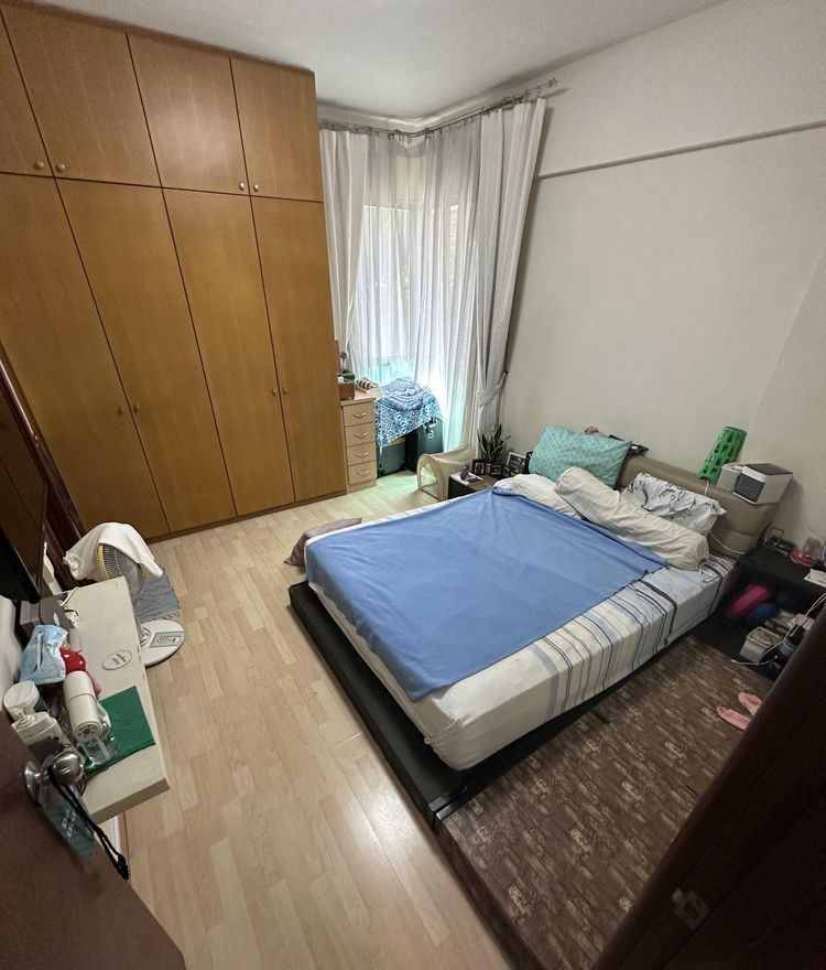 This well-maintained unit features a thoughtful layout with two spacious bedrooms, including a master suite equipped with a large floor-to-ceiling wooden wardrobe and a generous window draped in full-length curtains. The decorative floral partition in the hallway adds a touch of charm, while the fully-furnished setup ensures a seamless move-in experience. Enjoy the comfort of a ceiling fan in the second bedroom and the convenience of split-unit air conditioning in the living area.