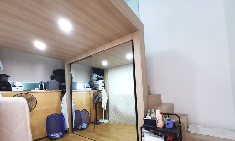 This efficient 1-bedroom layout features a seamless flow between the living area and kitchenette, equipped with an integrated washing machine for your convenience. The separate master bedroom boasts a large window adorned with sheer curtains, allowing for a serene retreat. Every corner of this unit reflects quality finishes and thoughtful design, making it a perfect home for urban dwellers.