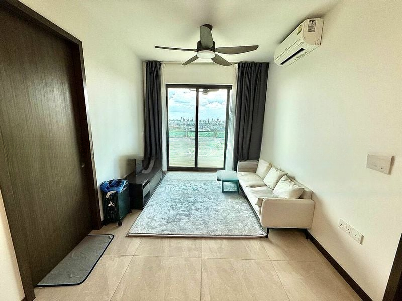 Step into a bright and airy sanctuary at Normanton Park, where abundant natural light floods through floor-to-ceiling windows, offering breathtaking views of lush greenery and the city skyline. The high ceilings and polished tile flooring create an inviting ambiance, making every moment spent here feel luxurious and serene.