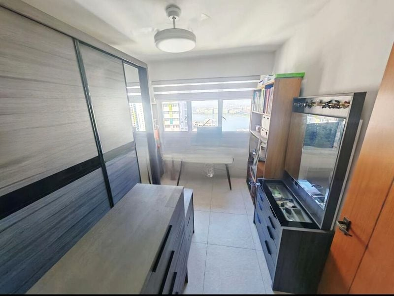 This well-maintained 3-bedroom unit features a modern galley kitchen adorned with dark cabinetry and a mint green backsplash, perfect for culinary enthusiasts. The master bedroom is a peaceful retreat, complete with a large bed and dressing table, while the versatile study room offers additional space for work or relaxation. Each room is equipped with ceiling fans, ensuring comfort throughout the year.