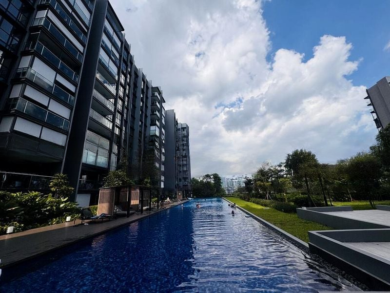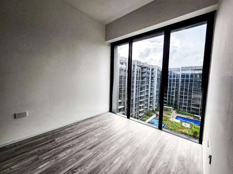 Step into a world of modern elegance as you enter this brand-new unit at The Woodleigh Residences. Bathed in abundant natural light, the open-concept living area features light-colored floor tiles and built-in cabinetry, creating a serene and inviting ambiance. Enjoy breathtaking views of the pool and lush greenery from the spacious balcony, perfect for relaxation or entertaining.