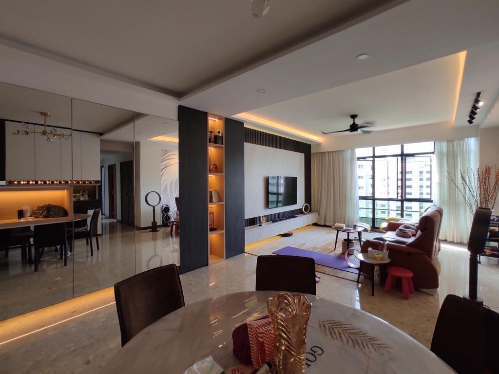 Step into a world of modern elegance as you enter this beautifully renovated 4-bedroom unit at Chestervale. Bathed in abundant natural light, the open-concept living and dining areas feature floor-to-ceiling windows that frame stunning views of the city skyline. The minimalist design is accentuated by marble-look flooring and a striking mirrored feature wall, creating an inviting ambiance that feels both spacious and sophisticated.