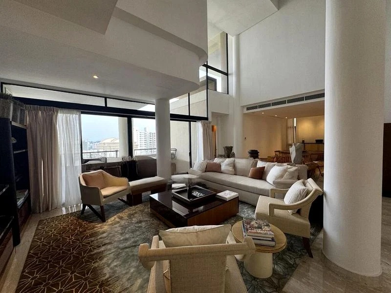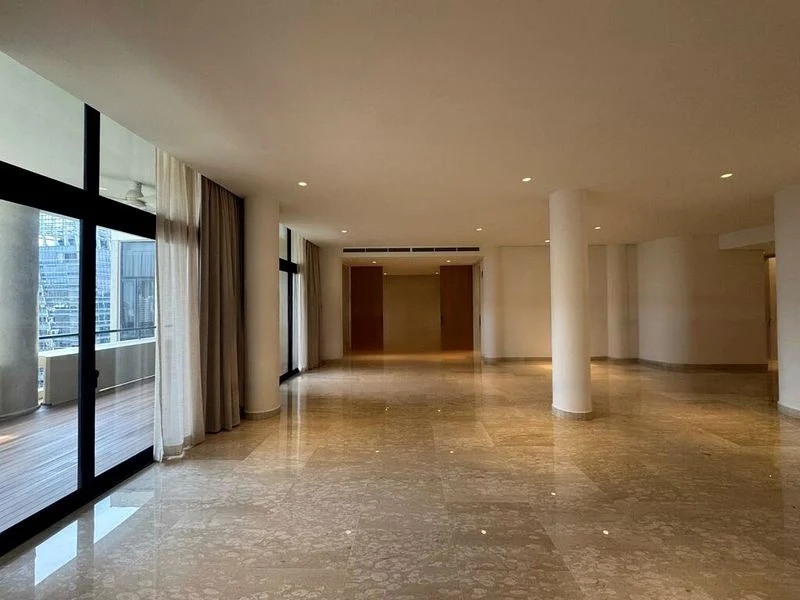 Step into a world of elegance as you enter this beautifully designed unit at The Colonnade. The abundant natural light floods the space through floor-to-ceiling windows, illuminating the stunning marble flooring in the living and dining areas. The double-volume ceiling creates an airy ambiance, while the breathtaking views of the city skyline invite you to relax and unwind.