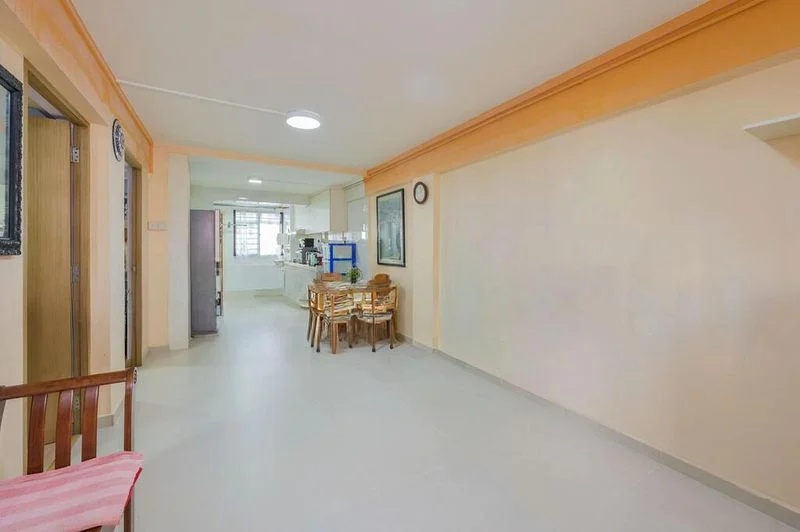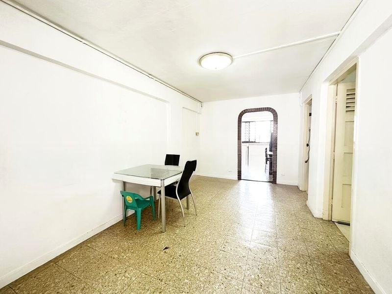 Step into a nostalgic charm as you enter this HDB unit, where vintage green wall tiles and patterned mosaic floor tiles create a unique ambiance. The moderate natural light filters through the windows, illuminating the space and offering serene views of lush greenery outside. The internal staircase adds character, inviting you to explore the potential within.