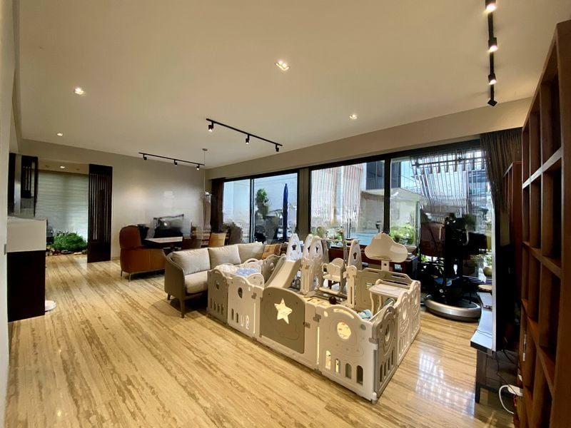 Step into a world of modern elegance at Goodwood Residence, where abundant natural light floods the spacious living area through floor-to-ceiling sliding glass doors. The marble-look tiled flooring and designer finishes create a sophisticated ambiance, complemented by views of lush greenery and the cityscape beyond. This is not just a home; it’s a sanctuary that invites relaxation and inspiration.