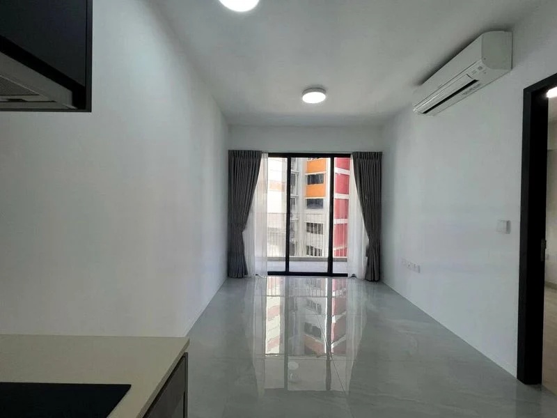 Step into this brand-new unit at Riverfront Residences and be greeted by an abundance of natural light that floods the open-concept living space. The sleek grey tiled flooring complements the modern minimalist design, while the balcony offers a refreshing urban view, creating a serene ambiance perfect for relaxation.
