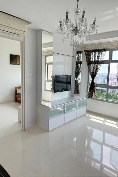 Step into a beautifully renovated 3-bedroom flat that exudes modern elegance. The open-concept living area welcomes you with a striking tray ceiling adorned with warm cove lighting, creating a cozy ambiance. Enjoy the urban and greenery views from the large TV feature wall with mirrored accents, perfectly complementing the floating console that enhances the space's functionality.
