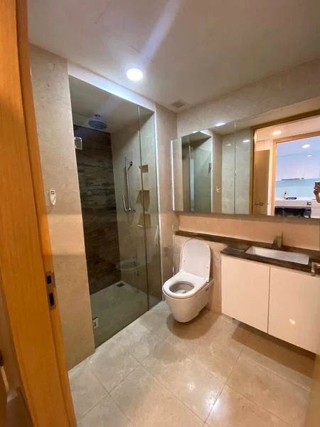 This well-maintained 1-bedroom unit features a thoughtful layout with a dedicated household shelter for extra storage. The modern kitchen boasts white gloss cabinetry and integrated appliances, while the bathroom is a luxurious retreat with a walk-in rain shower, striking black marble feature wall, and contemporary fittings. The large Private Enclosed Space (PES) extends your living area outdoors, enhancing your lifestyle.
