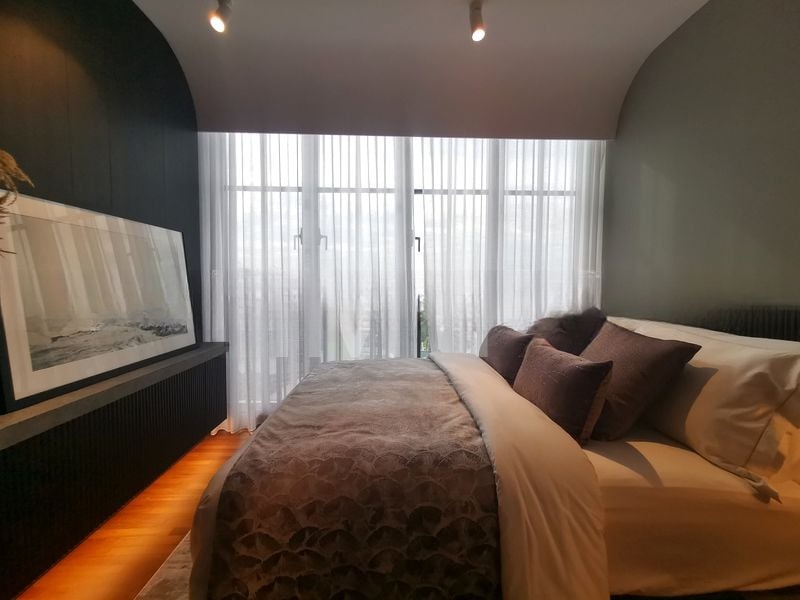Step into a world of modern elegance as you enter this meticulously maintained 1-bedroom unit at BIJOU. Bathed in abundant natural light, the open-concept living space features stunning wood-look tile flooring, designer wall paneling, and floor-to-ceiling windows that frame captivating urban views. The ambiance is a perfect blend of minimalist sophistication and comfort, inviting you to unwind in style.
