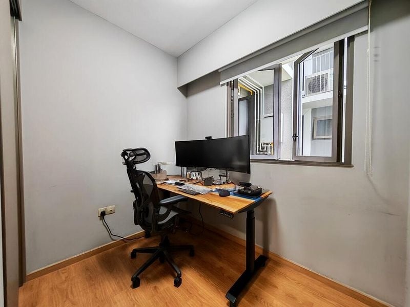 This well-maintained 4-bedroom unit boasts a thoughtful layout, featuring a galley kitchen equipped with a gas hob and built-in oven, perfect for culinary enthusiasts. The master bedroom is a sanctuary of comfort with floor-to-ceiling windows, an ensuite bathroom with a walk-in shower, and a designer feature wall. Additional highlights include a custom bunk bed in the second bedroom, a height-adjustable standing desk in the study, and luxurious wood-look tile finishes throughout.