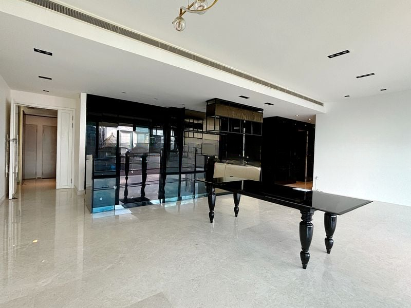 This well-maintained 3-bedroom, 4-bathroom unit boasts standout features such as a breathtaking infinity pool surrounded by landscaped islands, a black marble double vanity, and a freestanding bathtub in the master bathroom. The open layout seamlessly connects the living areas, making it perfect for entertaining or enjoying quiet evenings at home. The gym offers pool views, ensuring your workouts are as enjoyable as they are effective.