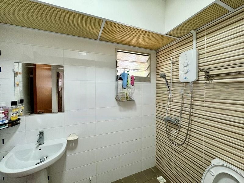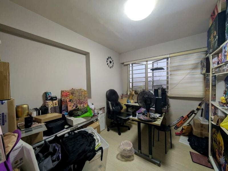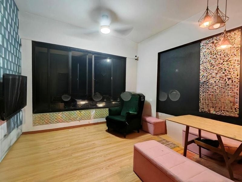 Step into this functional HDB flat and feel the warmth of home with its spacious layout and basic yet practical finishes. The living room, adorned with tiled flooring and a ceiling fan, offers a cozy atmosphere, while the teal accent walls in the bedroom add a splash of character. Natural light may be limited, but the air conditioning ensures comfort throughout the day.