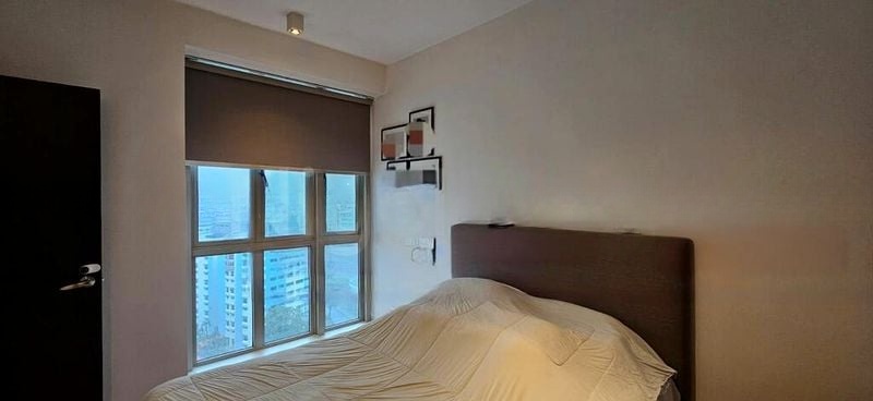 This thoughtfully designed layout features a spacious living room with an L-shaped leather sofa, a dining area perfect for gatherings, and a stylish kitchen equipped with black granite countertops and a breakfast bar. The master bedroom boasts parquet wood flooring and a charming bay window, while the common bedroom is equally inviting. Enjoy resort-style amenities including a large swimming pool, indoor jacuzzi, and landscaped gardens that enhance your lifestyle.