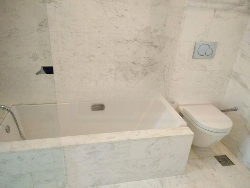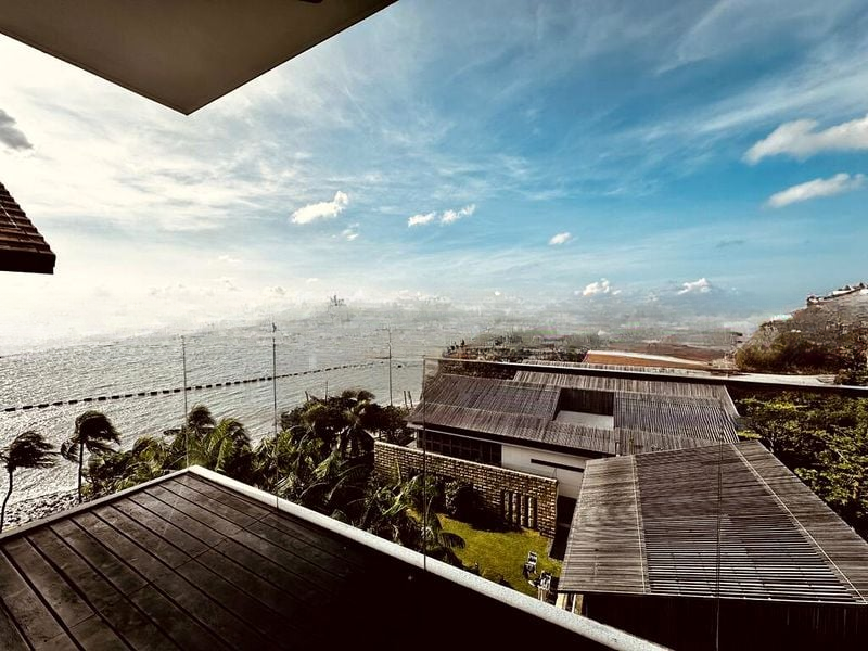 Step into a world of elegance as you enter this stunning unit at The Azure. The abundant natural light floods the space, highlighting the exquisite marble flooring in the living area and the unobstructed sea views framed by floor-to-ceiling sliding glass doors. The ambiance is bright and airy, inviting you to relax on your dark wood balcony while enjoying the lush greenery and coastal walkway views.
