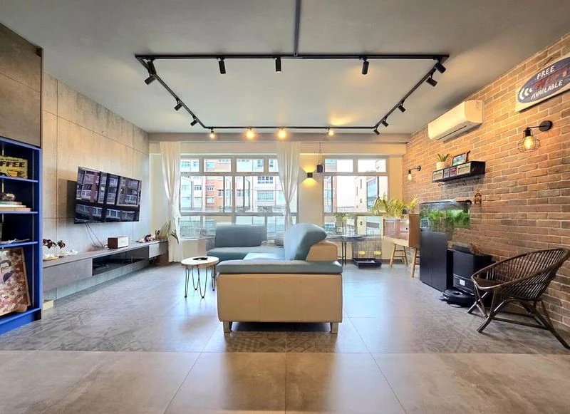 Step into this beautifully renovated HDB flat and be greeted by an inviting ambiance that seamlessly blends industrial-chic aesthetics with modern comforts. The abundant natural light streams through large windows, illuminating the striking brick feature wall and the sleek track lighting, creating a warm and welcoming atmosphere. The open-concept layout enhances the spacious feel, perfect for both relaxation and entertaining.