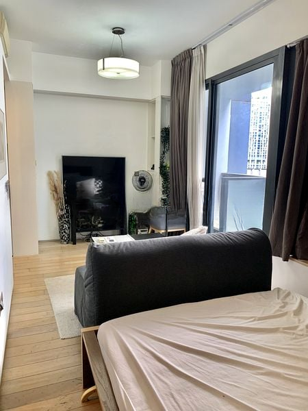 Step into this beautifully maintained unit at SKYSUITES@ANSON and be greeted by an abundance of natural light pouring through the floor-to-ceiling windows, illuminating the modern minimalist design. The striking black mosaic tiles in the bathroom and the elegant wooden flooring create a sophisticated ambiance that invites relaxation and comfort.