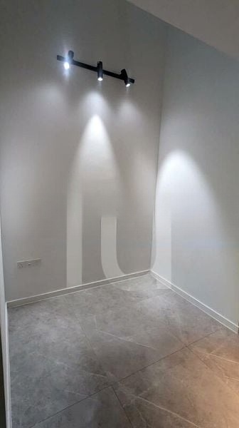 This modern open-concept layout features a spacious living room that seamlessly flows into the kitchen, equipped with integrated appliances and chic two-tone cabinetry. The bedroom offers a cozy retreat with wood flooring and built-in wardrobes, while the bathroom boasts luxurious grey marble finishes and a refreshing rain shower. The thoughtful design and quality finishes create an inviting ambiance perfect for relaxation and entertaining.