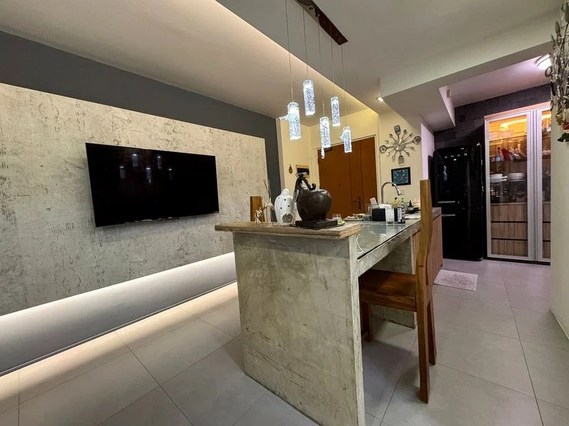 This well-maintained 3-bedroom unit features a thoughtful layout with standout elements, including a built-in L-shaped study desk in the bedroom and a stylish kitchen with white cabinetry and a built-in gas hob. Recessed ceiling lights enhance the contemporary feel, while the accent wall in the bedroom adds a touch of character to the space.
