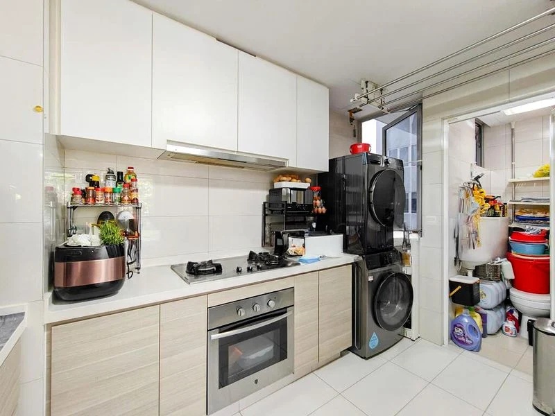 This well-maintained unit boasts a thoughtfully designed layout featuring a stylish TV feature wall with elegant wood paneling, a built-in shoe cabinet with a bench, and a modern kitchen equipped with an integrated oven and induction hob. The glass kitchen partition adds a touch of sophistication while maintaining an open feel. Each room is designed with minimalist aesthetics, ensuring a seamless flow throughout the home.