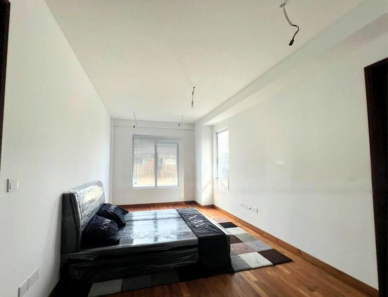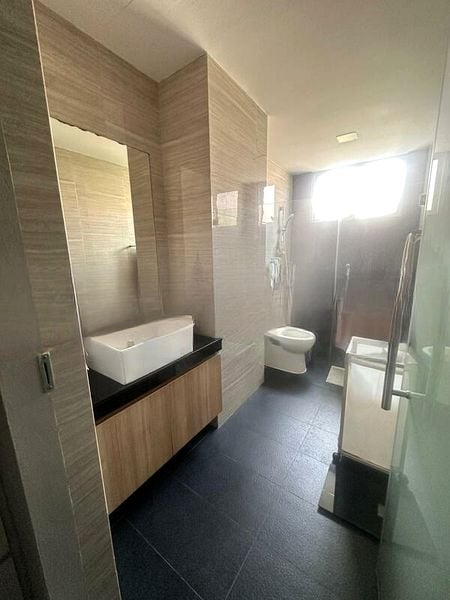 Step into a world of elegance as you enter this beautifully renovated home at Liria Terrace. The polished stone flooring reflects the soft glow of dual crystal chandeliers, while cove lighting enhances the modern minimalist ambiance. Large windows invite natural light, creating a warm and inviting atmosphere throughout the living spaces.