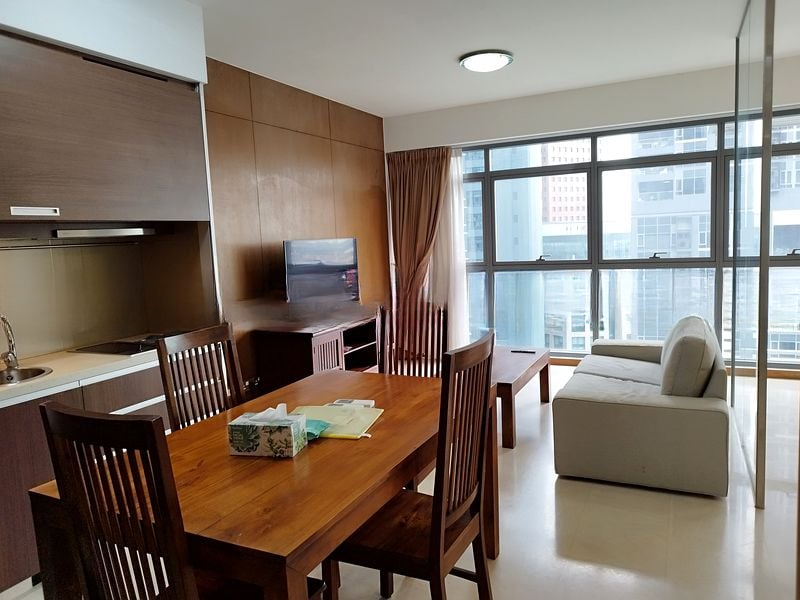 Step into a beautifully maintained unit at ICON, where abundant natural light floods through floor-to-ceiling windows, illuminating the open-plan living and dining area. The sleek glass partition wall adds a modern touch, while the stunning views of the city skyline create an inviting ambiance that feels both spacious and intimate.