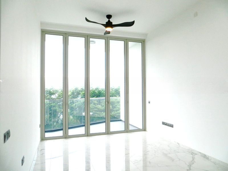 Step into a bright and airy sanctuary at Kallang Riverside, where abundant natural light floods the space through floor-to-ceiling glass doors. The stunning views of the Singapore Sports Hub, National Stadium, and Kallang River create an inviting ambiance that instantly captivates. The marble-look flooring adds a touch of elegance, while the glass balcony railing ensures unobstructed vistas of the city skyline and lush greenery.